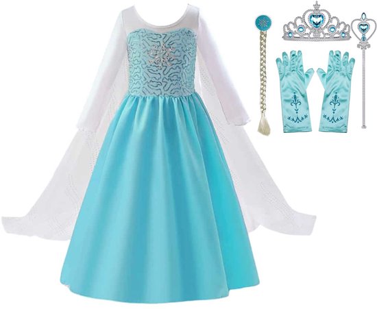 Het Betere Merk prinsessenjurk meisje Elsa -maat 110/116 - toverstaf, tiara, Elsa haarvlecht, prinsessen handschoenen