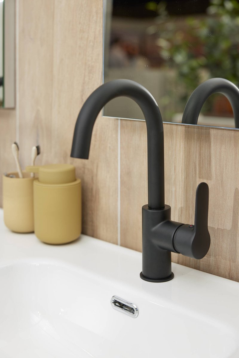 Saqu Dream Wastafelkraan - 21 cm Hoge Uitloop - met Aansluiting - Mat Zwart