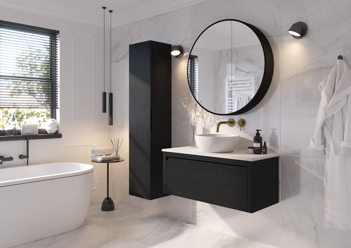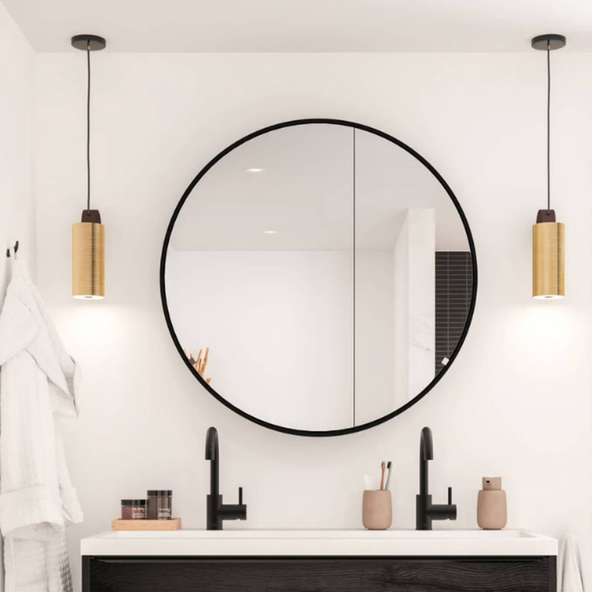 Ben Ingiro Ronde Spiegelkast - Ø 90 cm Zwart - Badkamerspiegel - Wandspiegel - Badkamerkast