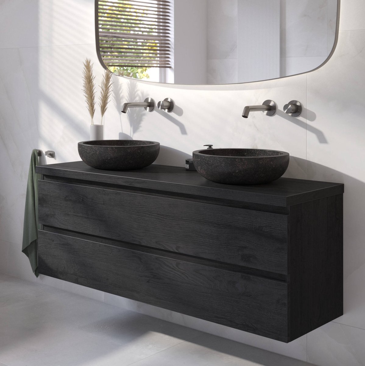 Saqu Nature Collection Waskom - Ø 40 cm - Zwart Natuursteen - Opbouw - Wastafel