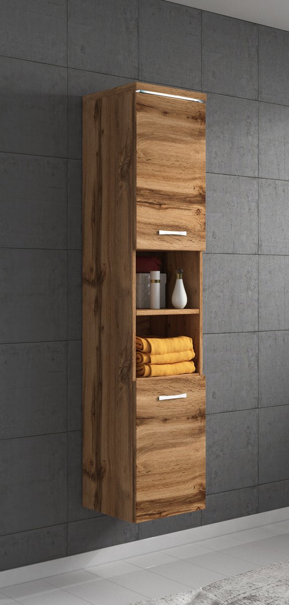 Badplaats Badkamerkast Paso 35 x 35 x 160 cm - Eiken - Hangende Kolomkast met 2 Deuren