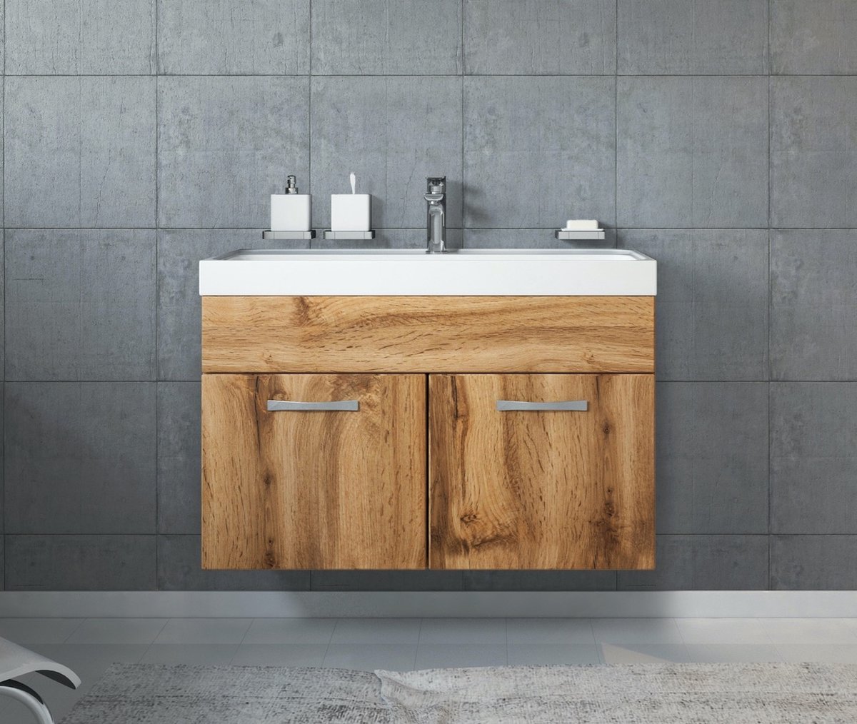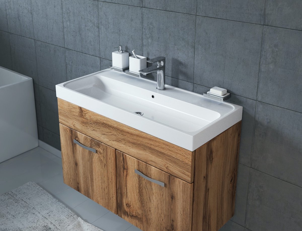 Badplaats Badkamermeubel Set Paso 01 80 x 40 cm - Eiken - Badmeubel met Wastafel