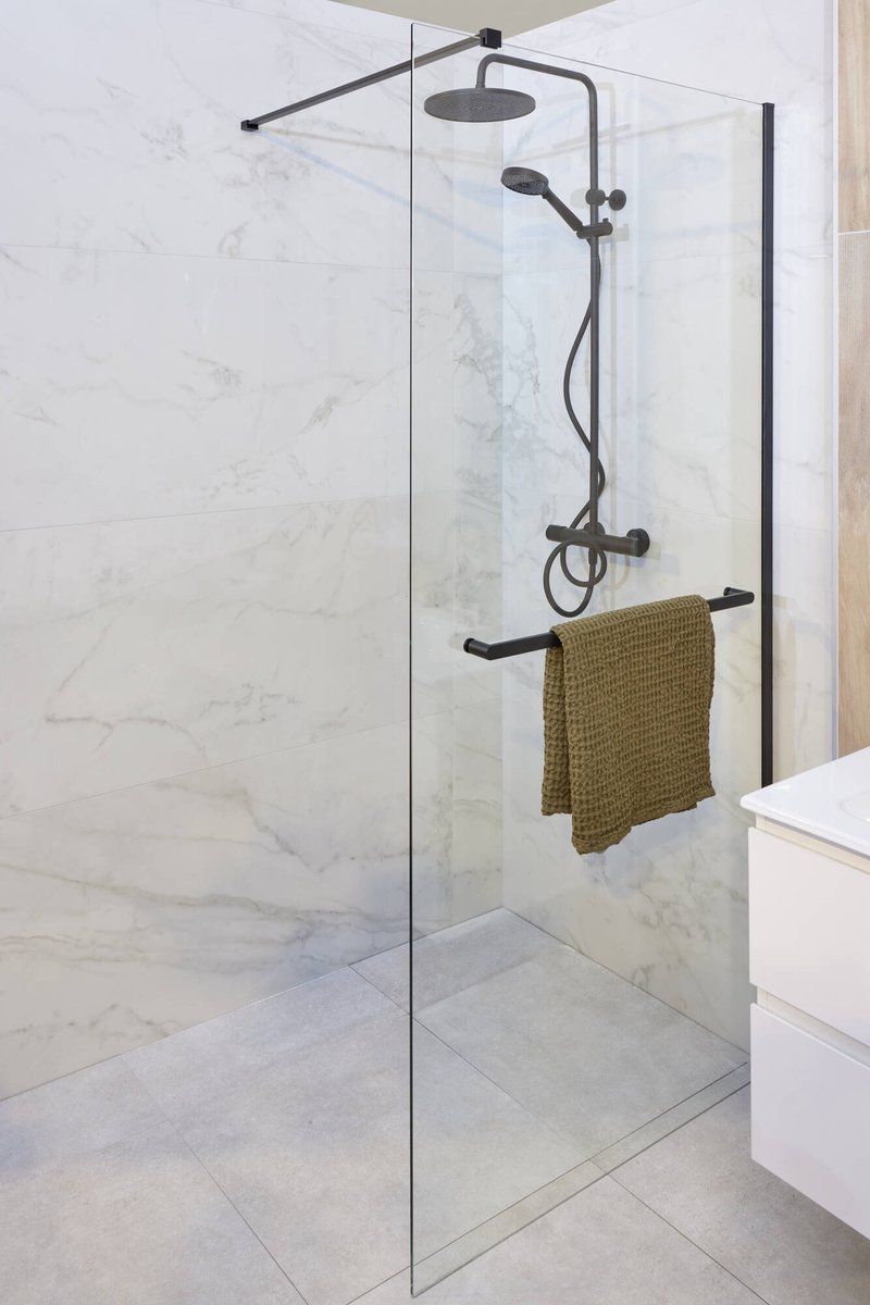 Saqu Modulo glaswand voor handdoekhouder en montageset 100x210cm