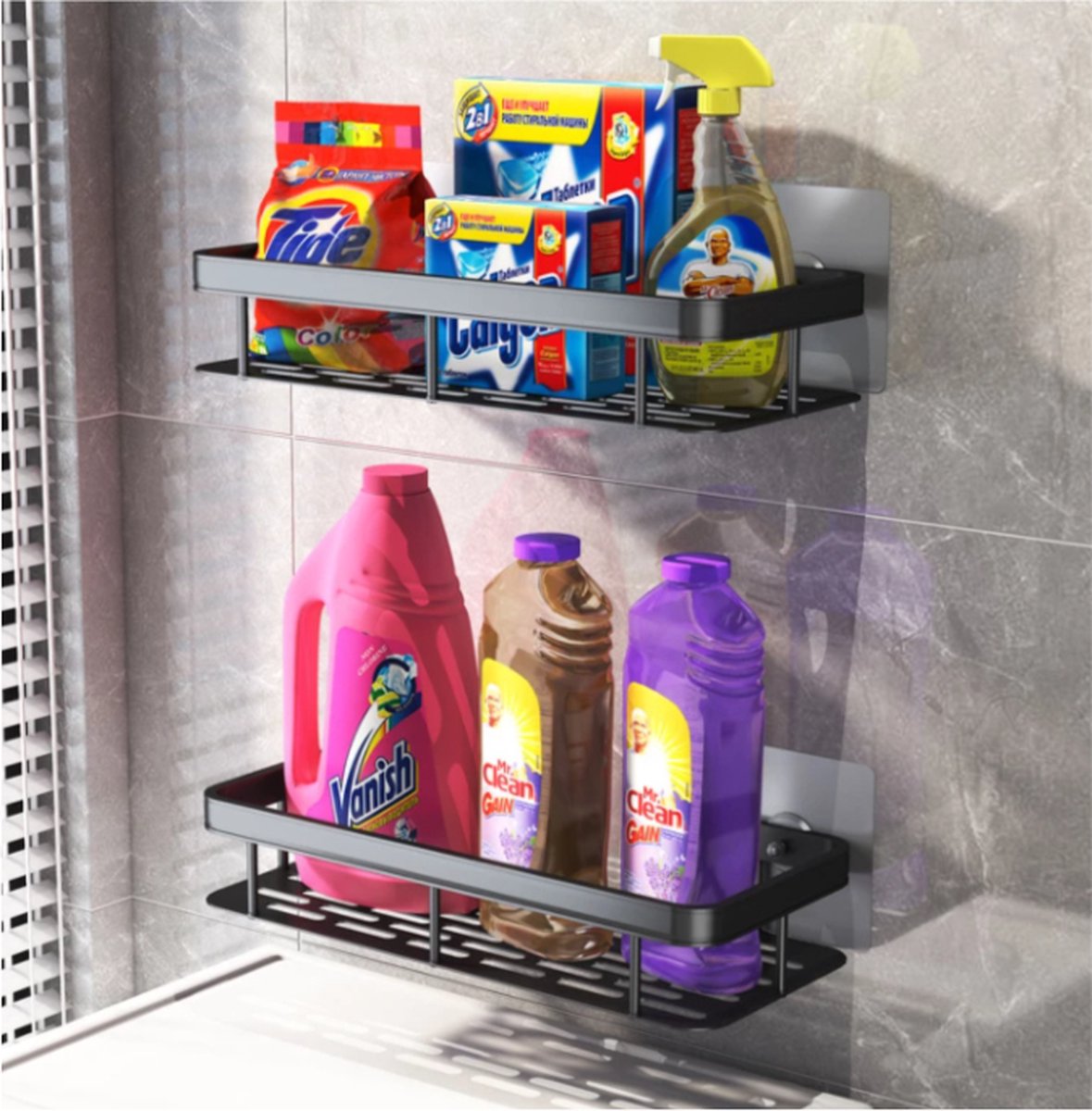 Wandrek- Zwart- 2stuks- Doucherek- Zonder te boren- Wandrek zonder boren- Wandrekje
