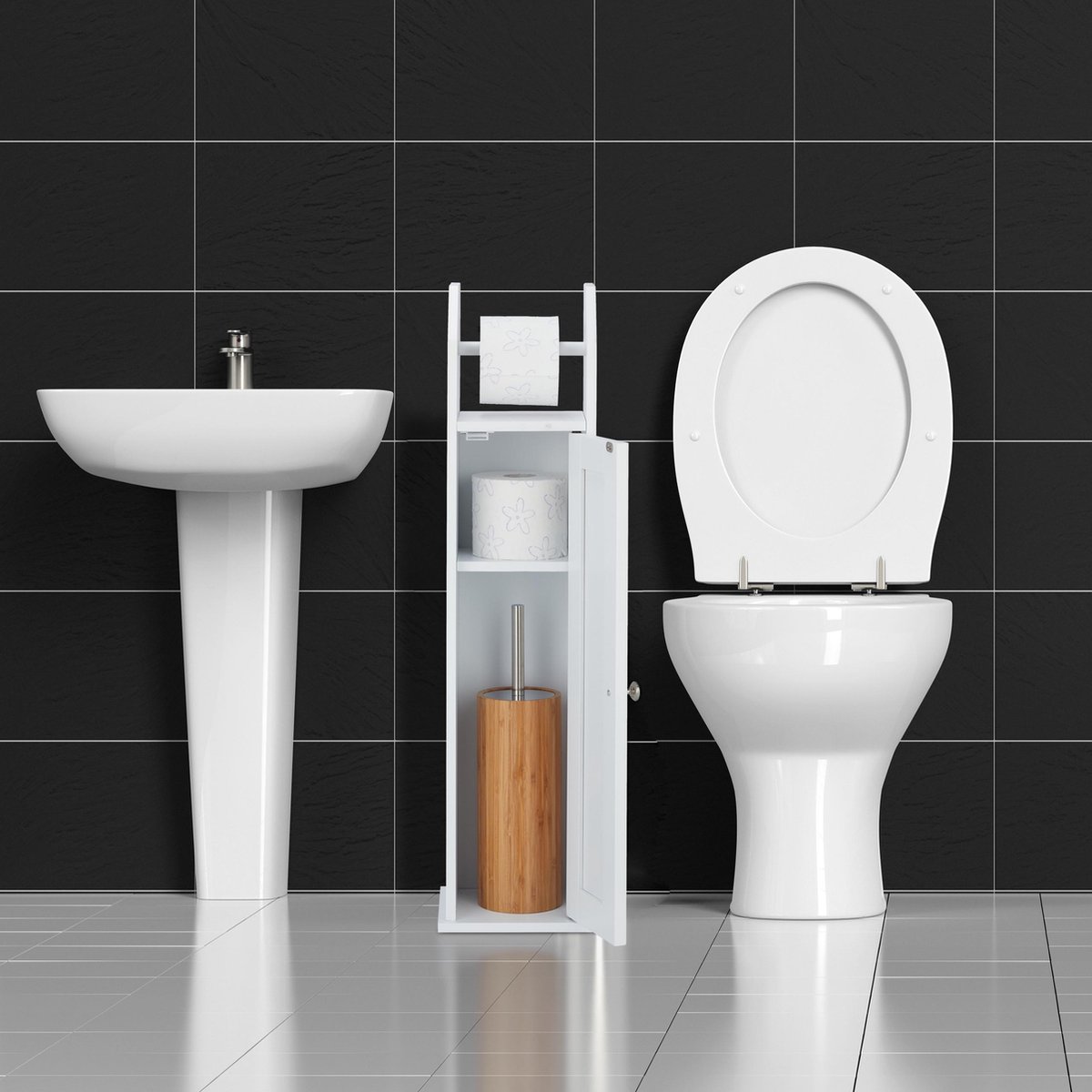 wc rolhouder staand - smal - reserverolhouder - 78,5 x 20 x 18 cm - toiletkast